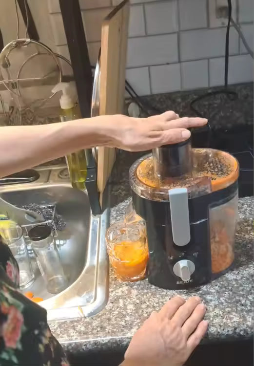 This juicer uses powerful slow-masticating technology to extract more vitamins, minerals, and natural flavor from every ingredient. It handles apples, oranges, celery, and carrots with ease, producing rich, smooth juice with minimal foam. By squeezing ingredients gently at low speed, it reduces oxidation and retains a higher level of nutrients.